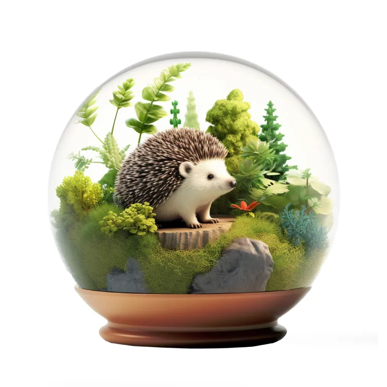 สวนขวดแก้วพร้อมเม่นเฮดจ์ฮอก
